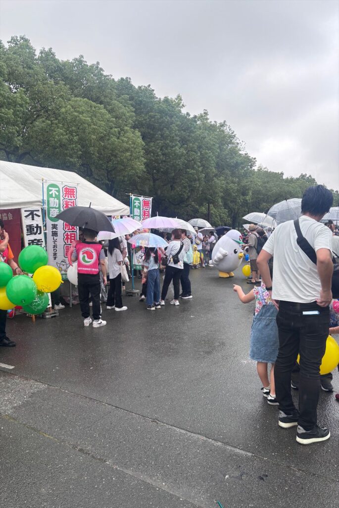 また、ご相談に来られた方、くじ引きをされた方を対象に、大阪府宅地建物取引業協会のノベルティを毎年無料配布しておりますが、大阪宅建本部からの協賛で子供向けのラムネ菓子も配布することができました。毎年大好評をいただいておりますノベルティ「たくっちモンスターパンチ風船」が今回も相変わらず高評価で、たくさんの方々に喜んでいただけたかと思います。