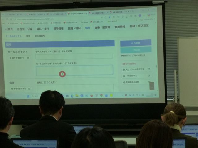 本講習会では、宅建協会専用不動産流通システム「ハトサポBB」の操作方法を中心に、物件登録からレインズとの連携、契約書作成までの実務について学びました。